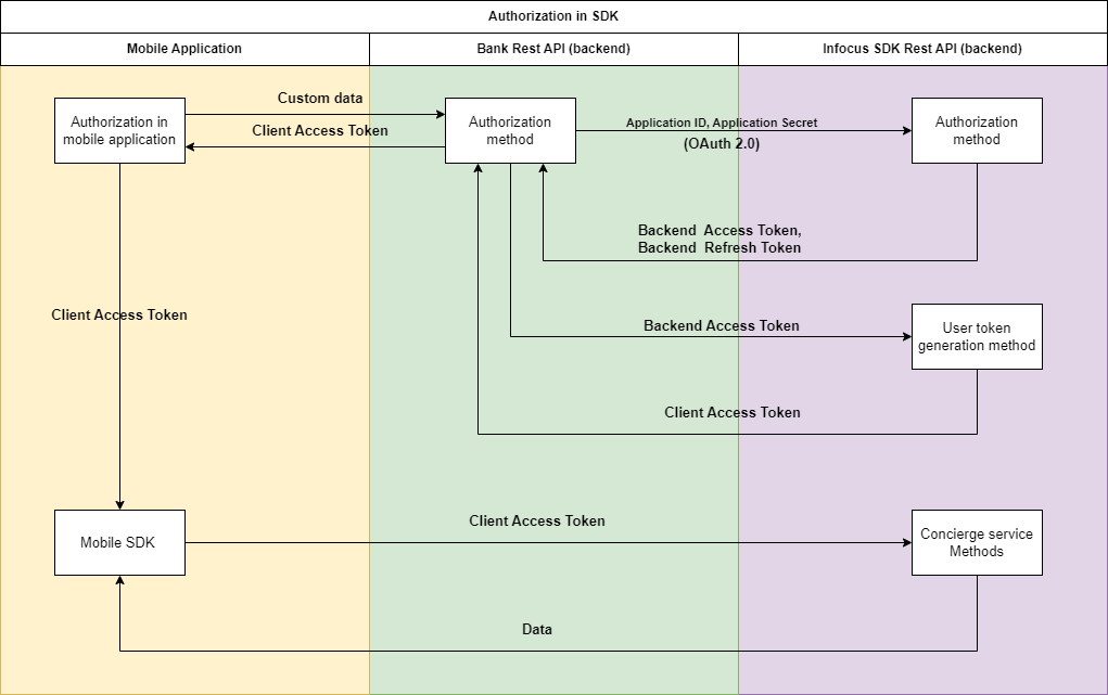 The Bank REST API backend authenticates on Infocus SDK REST API backend with Application ID and Application Secret.
